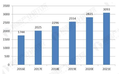 2016-2021年中國(guó)合同能源管理行業(yè)投資規(guī)模預(yù)測(cè)圖(單位:億元)