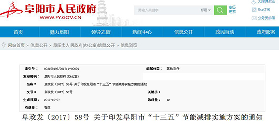 安徽阜陽發(fā)布:“十三五”節(jié)能減排實(shí)施方案