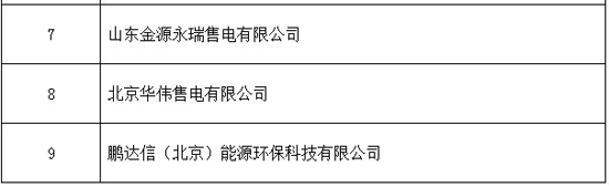 冀北電力交易中心有限公司于2017年10月19日至2017年11月19日共對13家售電公司進行了公示,具體為:北京電力交易中心受理并在冀北電網有售電業務的龍源電力集團能源銷售有限公司等9家售電公司;北京電力交易中心推送業務范圍變更至冀北的北京經開智控能源管理股份有限公司等4家售電公司。