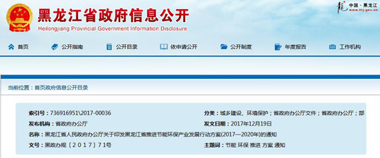 黑龍江省人民政府辦公廳關于印發(fā)黑龍江省推進節(jié)能環(huán)保產(chǎn)業(yè)發(fā)展行動方案(2017—2020年)的通知
