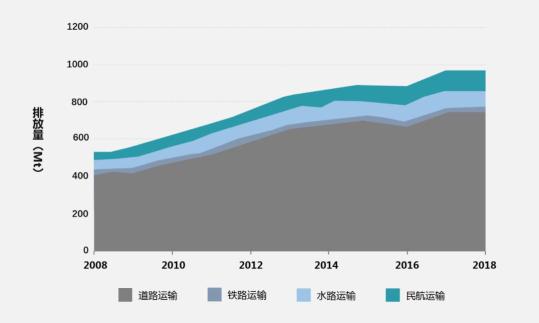 2008~2018年交通部門直接碳排放變化