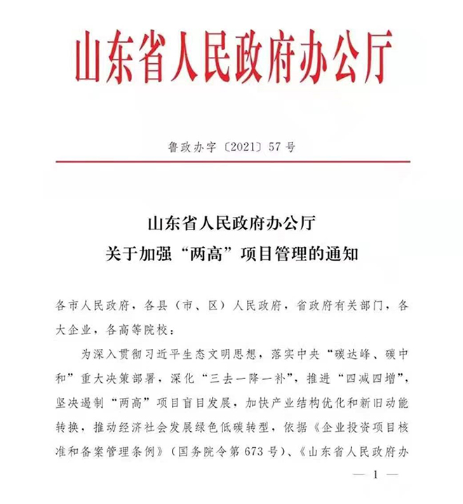 山東:嚴(yán)控“兩高”項目(高耗能高排放項目)把不符合要求的“兩高”項目堅決拿下來。