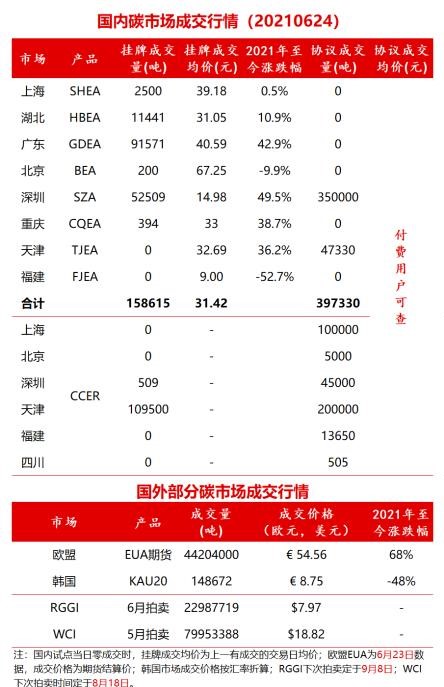 6月24日國內(nèi)碳市場交易行情:2021年至今漲幅最高到達(dá)49.5%。