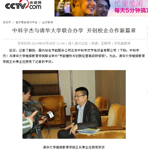 ????? 近日,記者了解到,國(guó)內(nèi)知名節(jié)能服務(wù)公司北京中科宇杰節(jié)電設(shè)備有限公司(下稱:中科宇杰)與清華大學(xué)繼續(xù)教育學(xué)院聯(lián)合舉辦“節(jié)能增效與創(chuàng)新經(jīng)營(yíng)高級(jí)研修班”。為此,清華大學(xué)繼續(xù)教育學(xué)院王長(zhǎng)榮主任接受了記者的專訪。