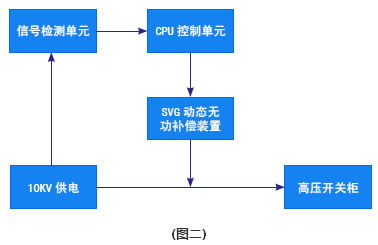 由圖二所示,在10KV高壓開關(guān)柜進(jìn)線處并聯(lián)安裝SVG動(dòng)態(tài)無功補(bǔ)償裝置,基本原理是利用可關(guān)斷大功率電力電子器件(如IGBT)組成自換相橋式電路,經(jīng)過電抗器并聯(lián)在電網(wǎng)上,適當(dāng)?shù)卣{(diào)節(jié)橋式電路交流側(cè)輸出電壓的幅值和相位,或者直接控制其交流側(cè)電流,就可以使該電路吸收或者發(fā)出滿足要求的無功電流,實(shí)現(xiàn)動(dòng)態(tài)無功補(bǔ)償?shù)哪康摹?/td> | ![]() |